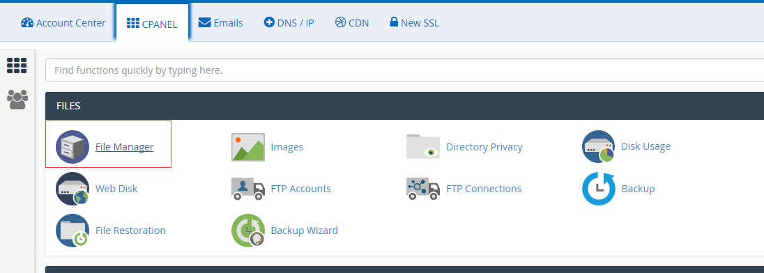 1) Go to file manager and go to the root of your site in Cpanel -> File Manager.