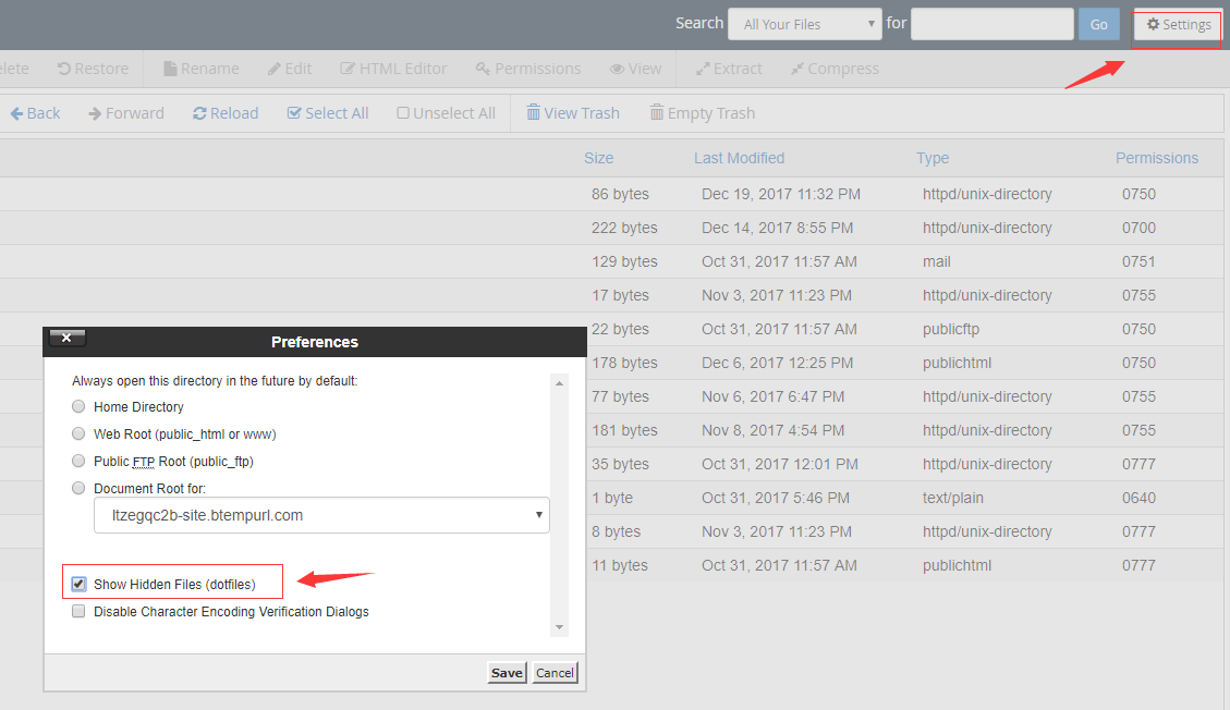 2) In file manager -> Setting,  click on it and select SHOW HIDDEN FILES