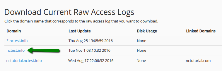 The Download Current Raw Access Logs option allows downloading the corresponding log for certain domain(-s):