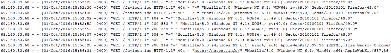 Each line begins with the identity of the agent that visited your website (generally, an IP address is recorded).