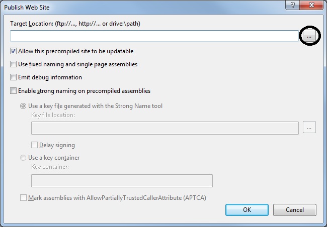 - Click Build -> Publish. This will bring up the "Publish Web Site" dialog box.